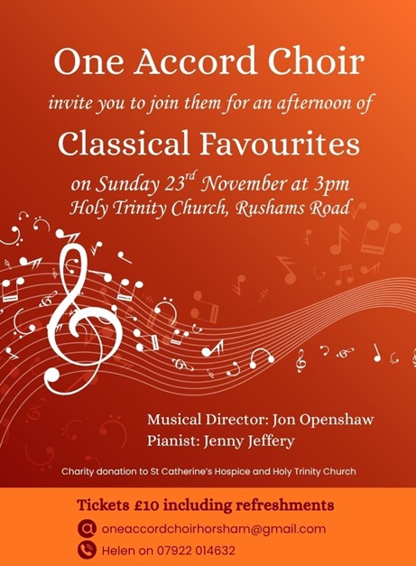 One Accord Choir – a ladies choir in Horsham, West Sussex, led by baritone Jon Openshaw and accompanist Jenny Jeffery.